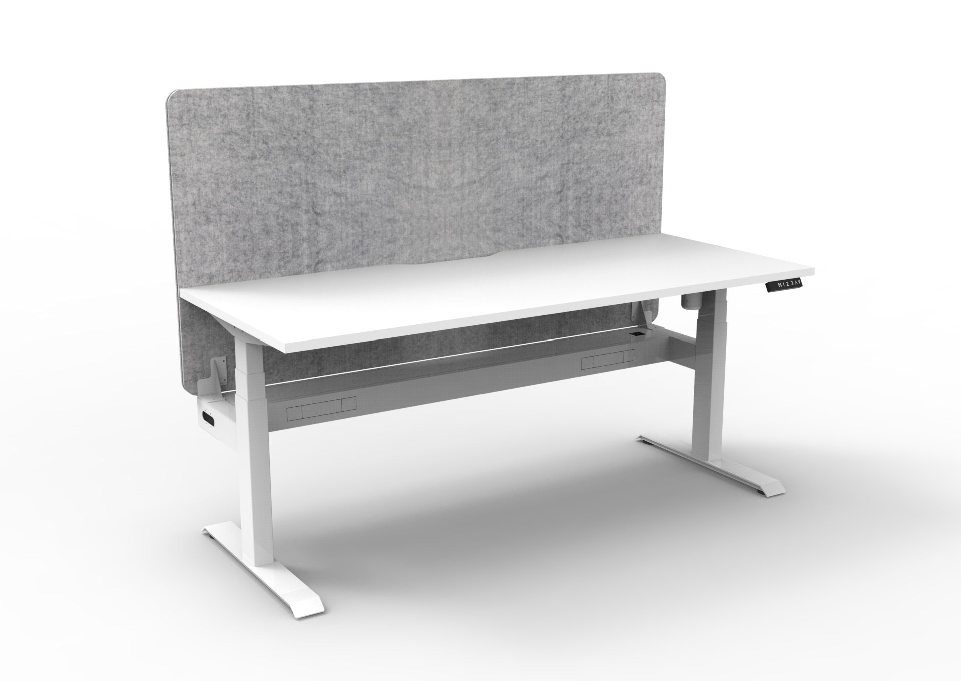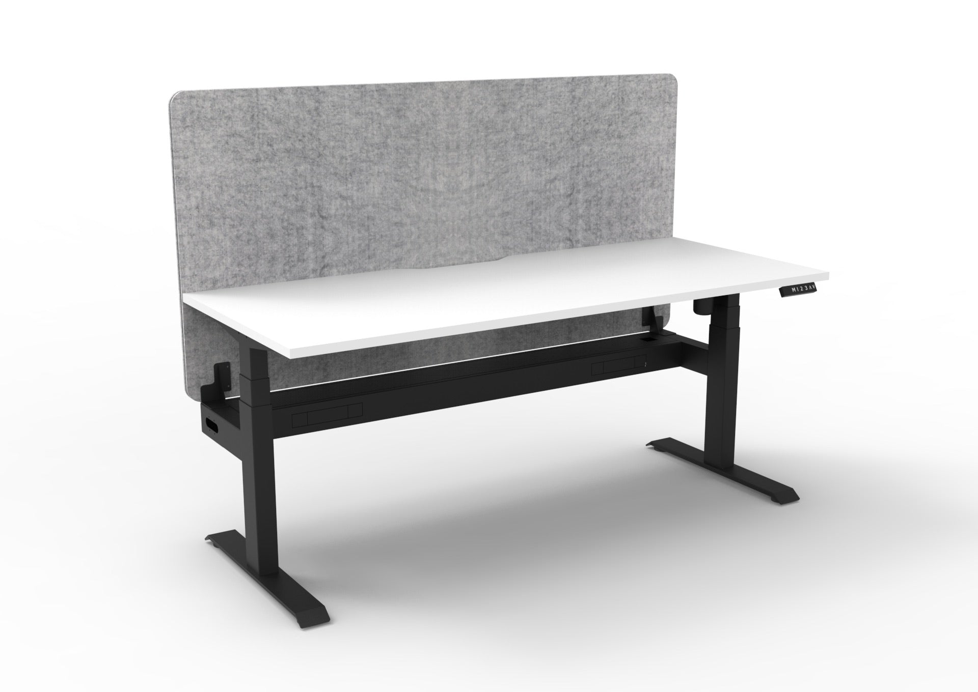 Available as a straight open desk, with cable tray and privacy screen options.